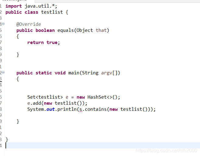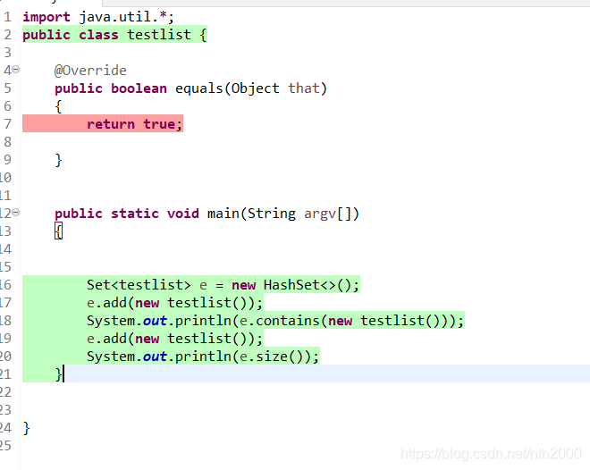 这里的输出结果还是false,即使我们已经重写了testlist方法。这是因为两者的hashcode是不一致的。