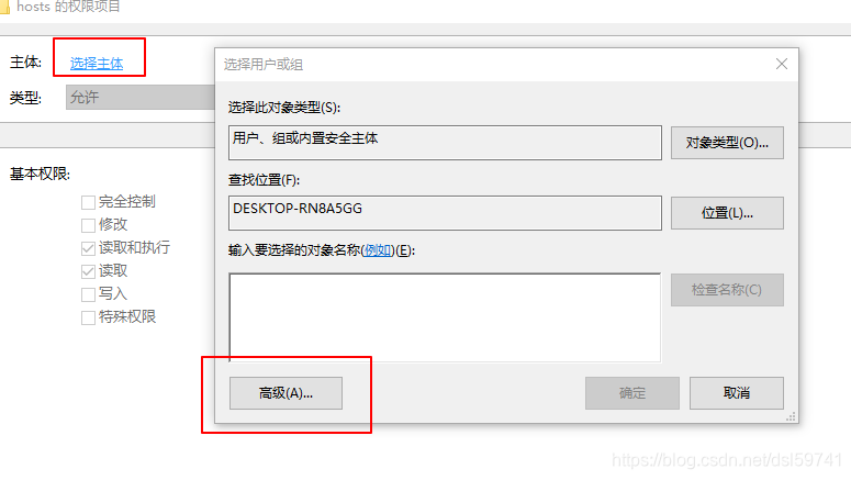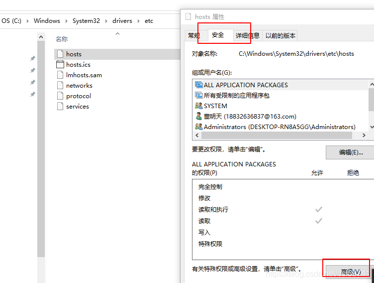 2.通过提升当前登录用户对Hosts文件的操作权限,一般找到hosts文件,右击文件选择属性——安全——高级——添加 ——选择主体——高级——立即查找——选择你当前登录计算机的用户——确定——确定——勾选基本权限——确定 ——确定——应用(最后会问到是否要修改权限,容易不安全一系列的,直接点击是)