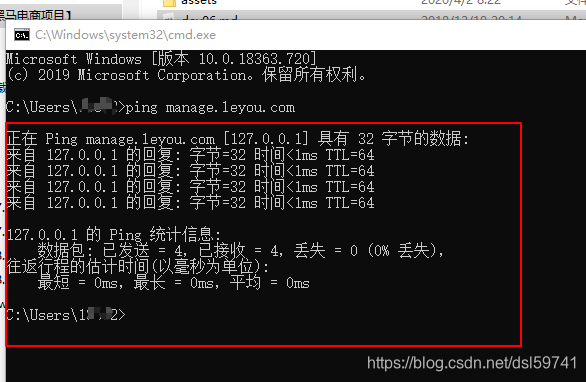 修改保存完hosts文件,使用cmd命令提示符看看是否域名和ip地址能映射成功,win + r ,cmd命令,使用ping 域名,ping一下域名,看能不能解析出来,如下图所示,如果能解析出来,那么我们就可以直接在浏览器中访问了