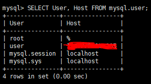 9.用刚刚在主库创建的user账号,在腾讯云从库登录,验证账号是否创建成功且拥有数据库权限