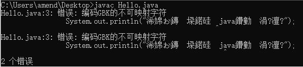 原因 Hello.java文件在C:\Users\amend\Desktop目录下