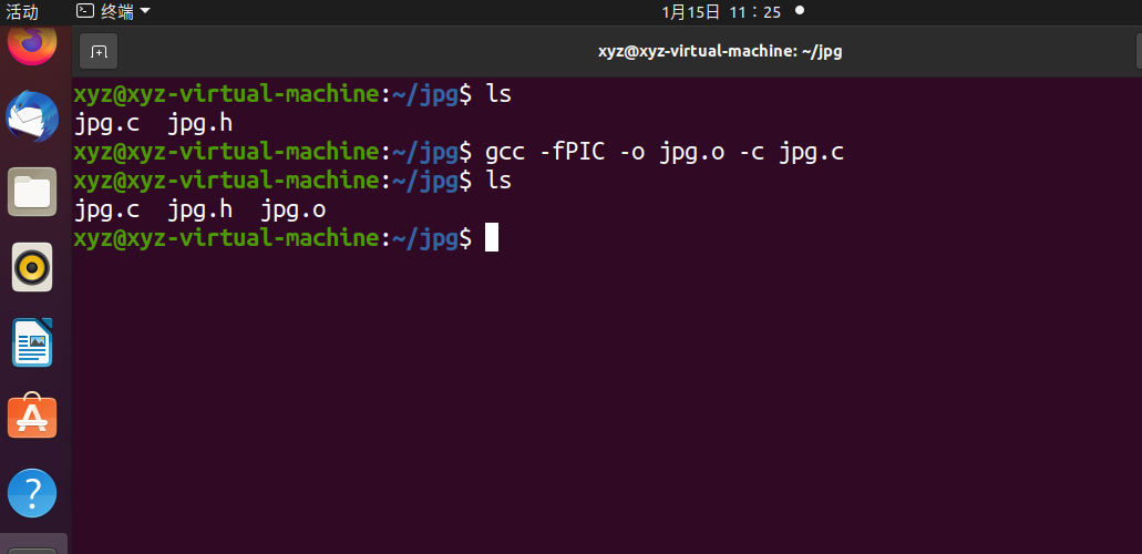 使用gcc -fPIC -o jpg.o -c jpg.c生成jpg.o