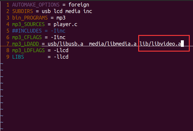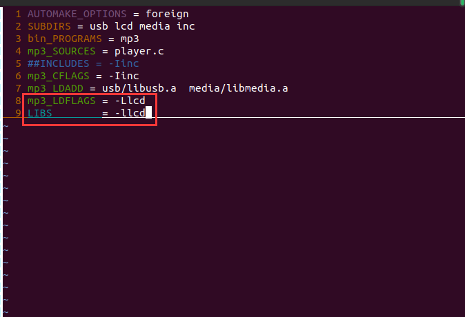 修改src/lcd/目录下的makefile.am文件