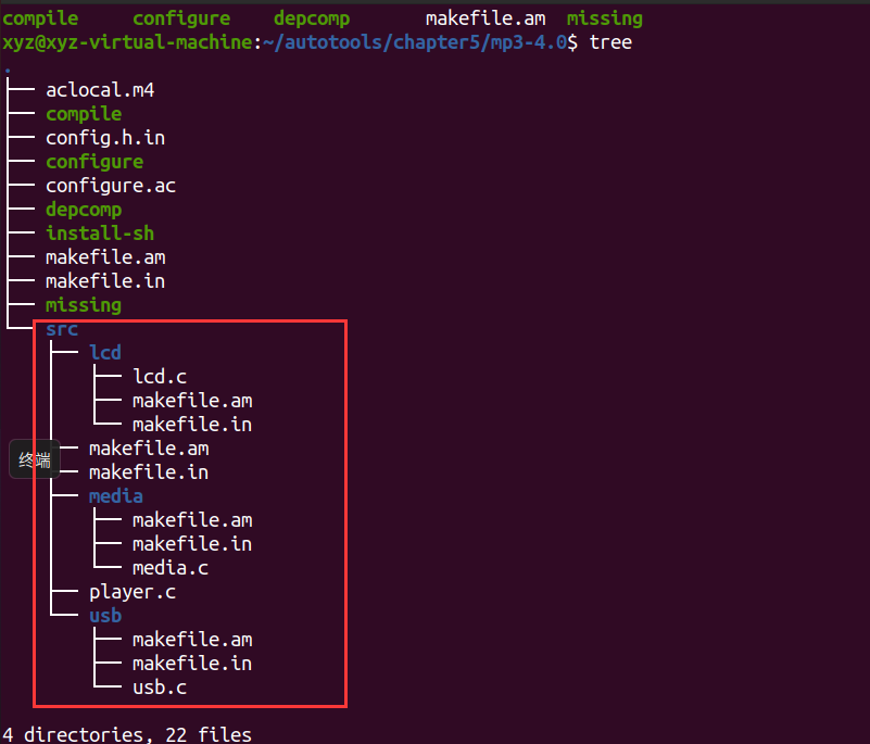 因为automake会生成大量的中间文件,导致污染原目录结构。因此新建一个src目录,将所有目录拷贝至到这个文件夹。