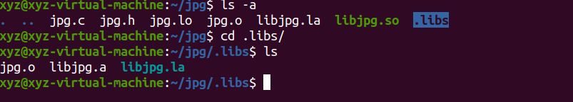 libjpg.la是可以打开的,使用ls -a可以看到有一个隐藏文件夹.libs