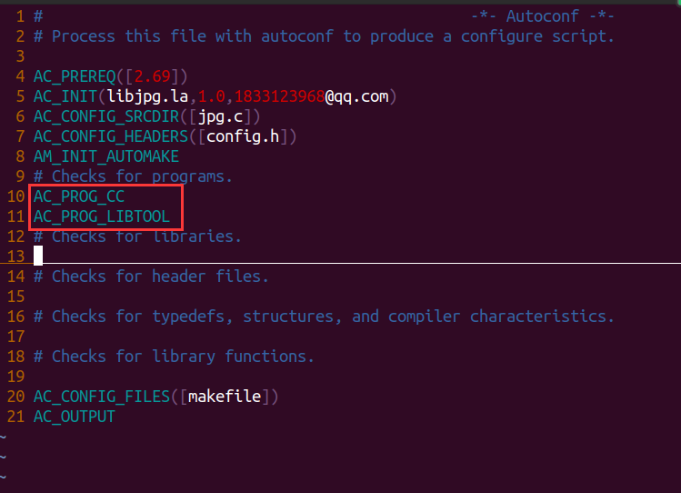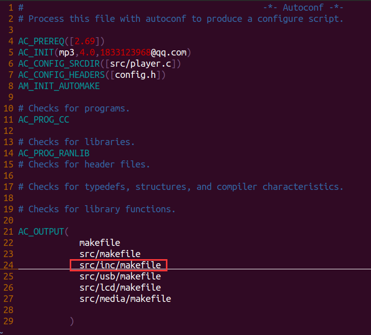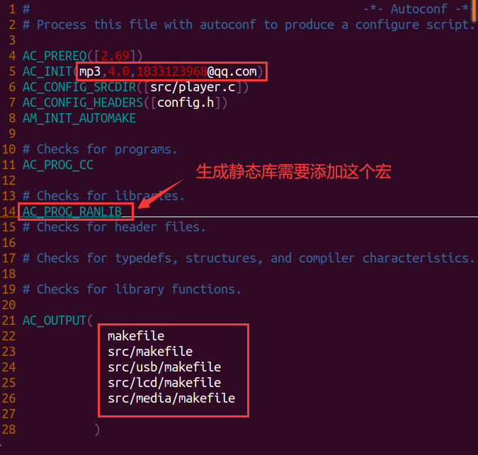 修改configure.ac文件