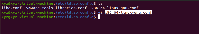 切换至路径/ect/ld.so.conf.d/目录下,打开x86_64-linux-gnu.conf
