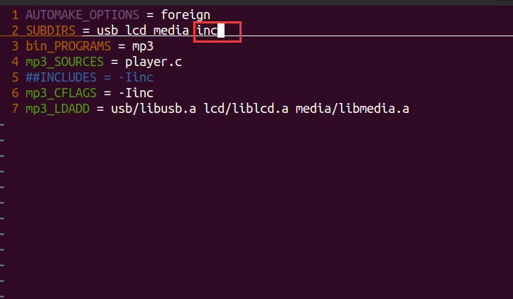 ---修改inc目录下的makefile.am文件安装头文件lcd.h
