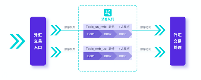 比如外汇交易中,可以指定不同的Topic对应不同的外汇兑换币种交易,同一类外汇兑换币种交易时采用全局顺序消息。