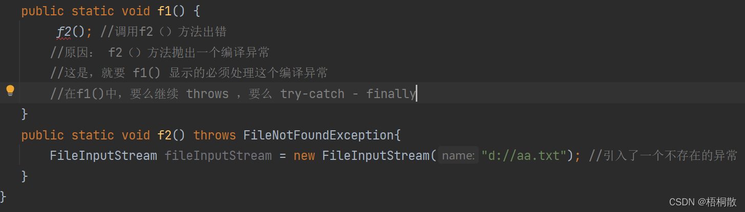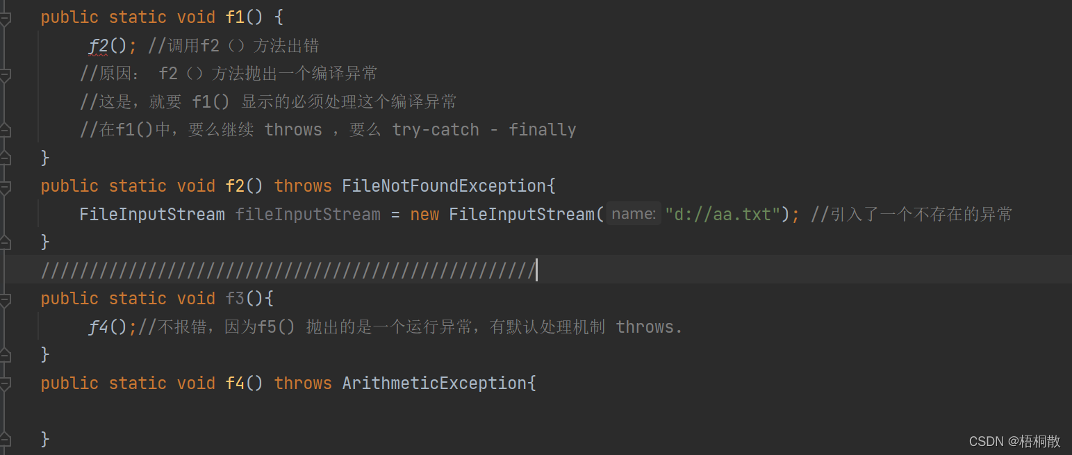 注意: 当一个异常你没有try-catch 也没有 throws ,其实已经默认 throws 向上甩锅。