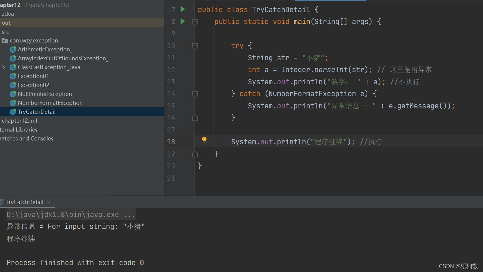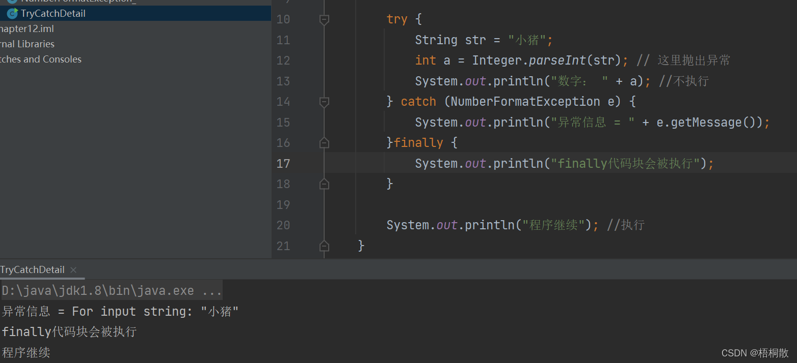 2)如果异常没有发生,则顺序执行 try 代码块,不会进入到 catch。