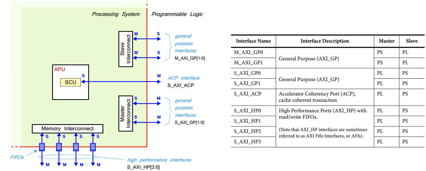 Programmable Logic to Memory Interconnect:管理与其他接口的通信,主要是AXI
