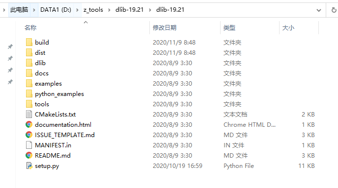 4、解压完成后,找到解压后的路径 ,例如我的路径为:D:\z_tools\dlib-19.21\dlib-19.21