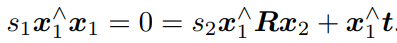 已知 R, t,想要求解的是两个特征点的深度 s1, s2。这两个深度是可以分开求的,先算s2,那么先对上式两侧左乘一个