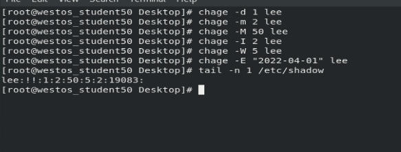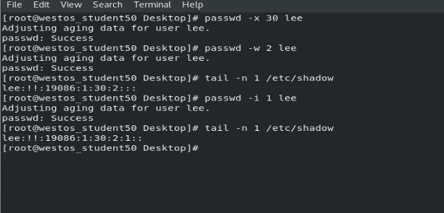 passwd -x 40 lee 40天内lee用户必须更新密码否则会被冻结