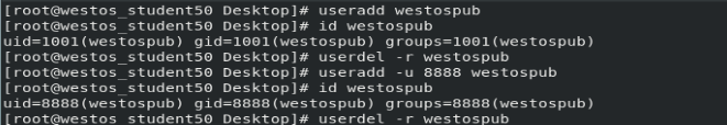 westos用户 在linux.wesots.com 使用超户 免密 执行useradd 和 userdel