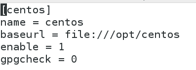 baseurl:/opt/centos是光盘文件的路径(上一步把光盘文件里的内容复制到/opt/centos目录下了)