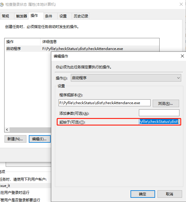 前提:此任务的exe在本地可以正常执行,同时在修改前可以使用计划任务定时执行。排除脚本问题及权限问题。