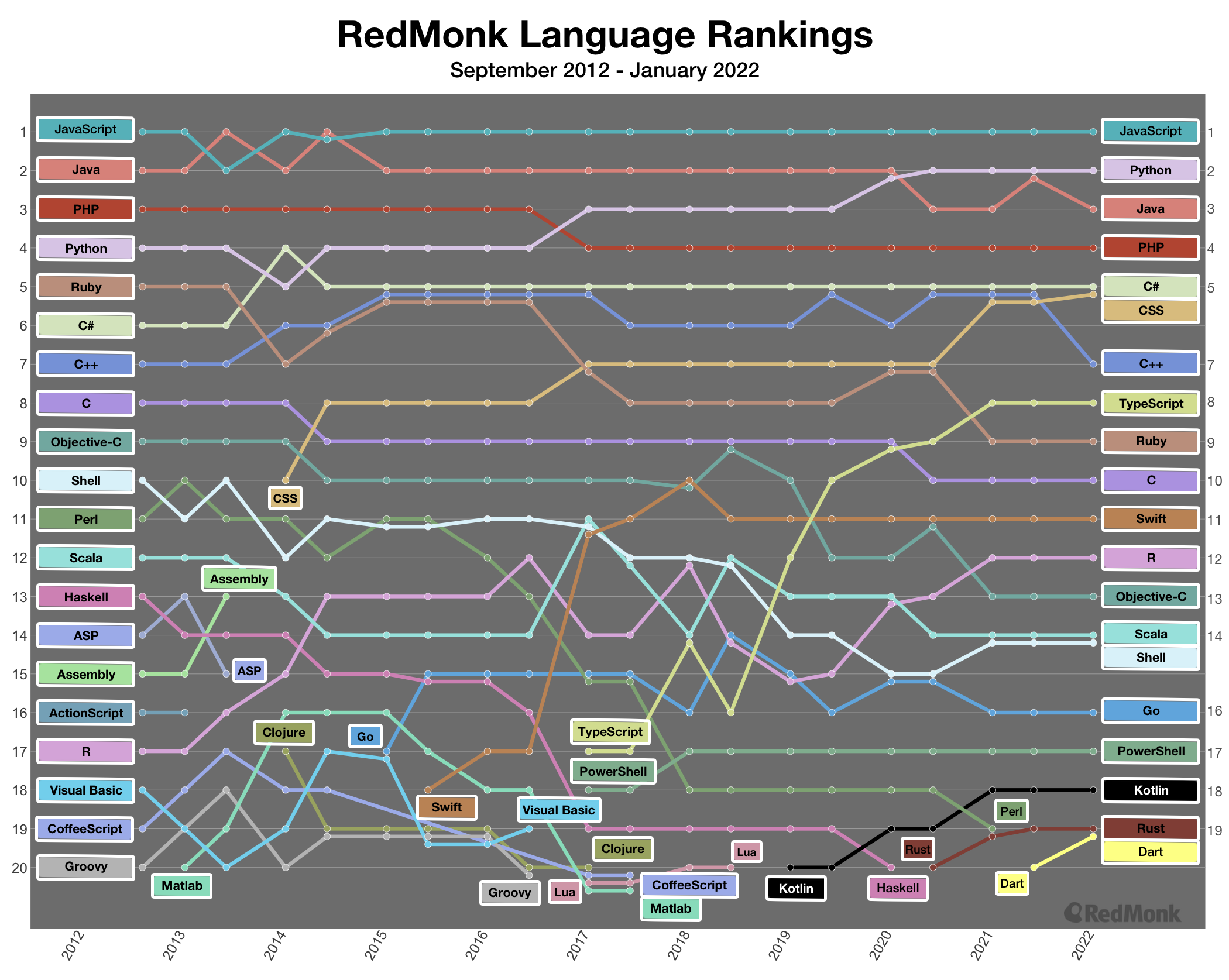 (2)RedMonk统计数据(2022 年上半年常规编程语言排名)
