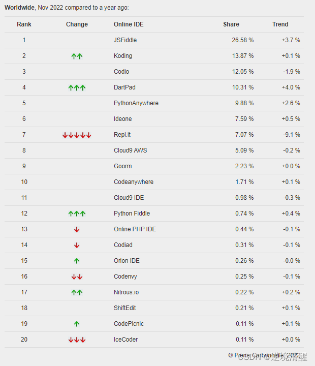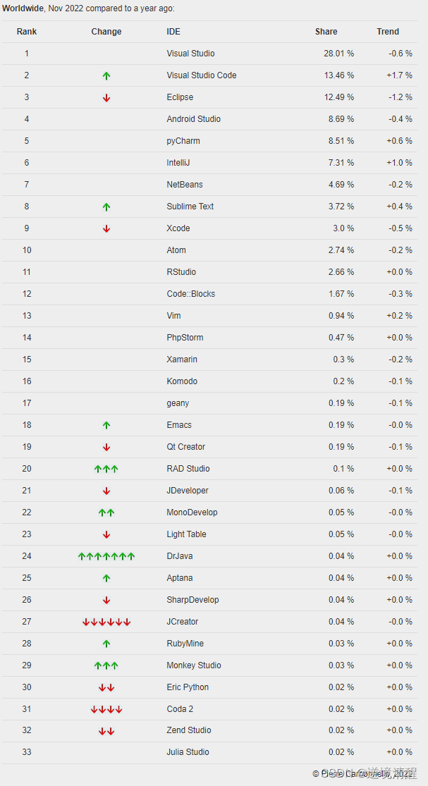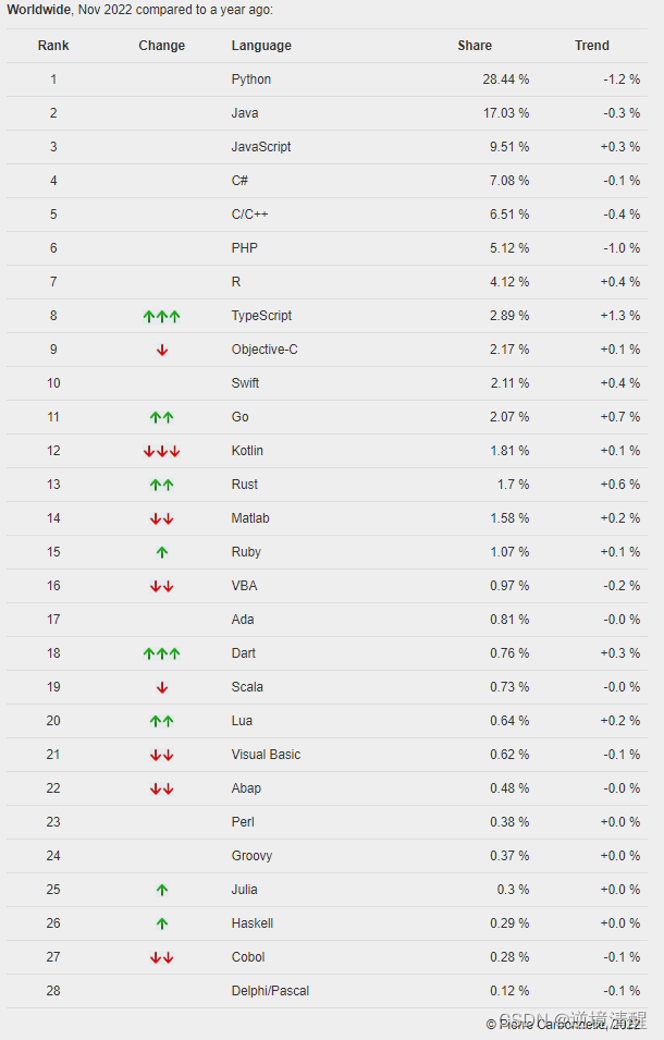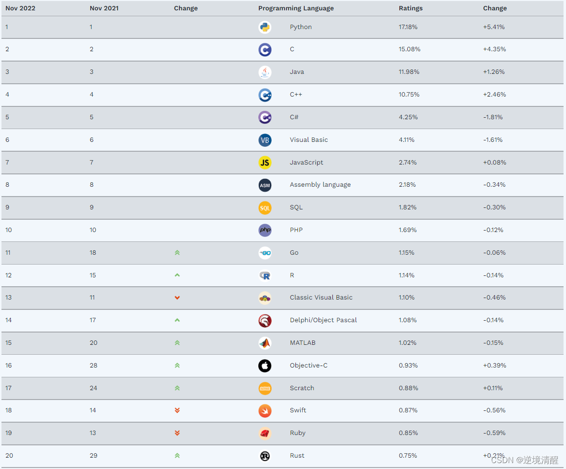 一、TIOBE统计数据(2022年11月)