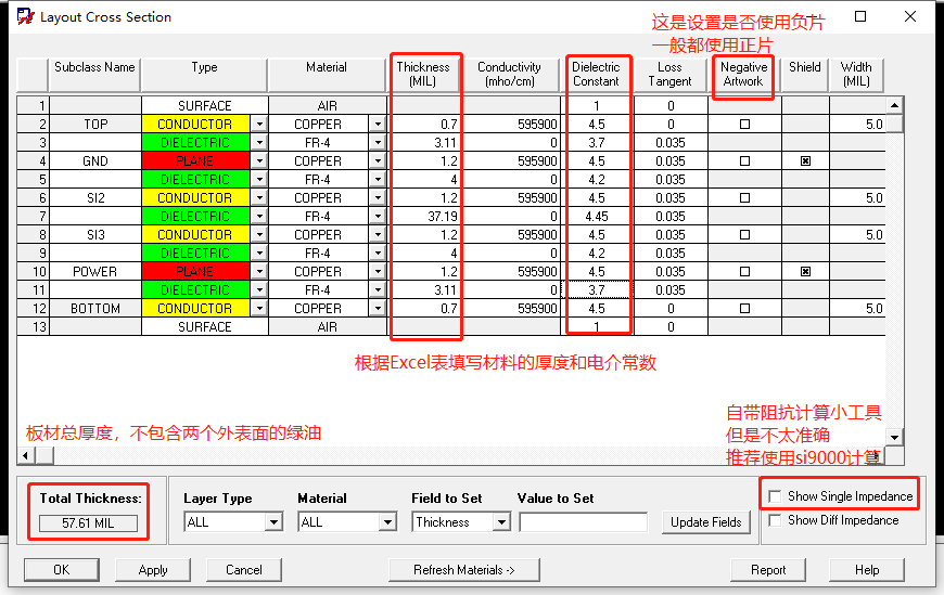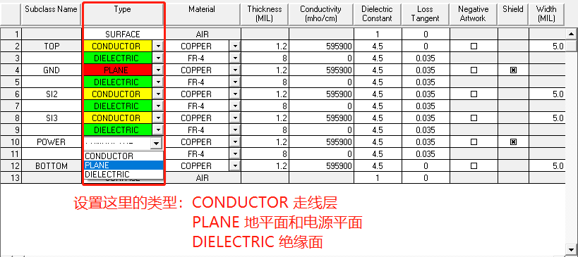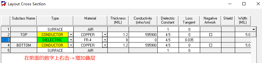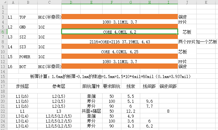 按照如下表格来设置叠层: