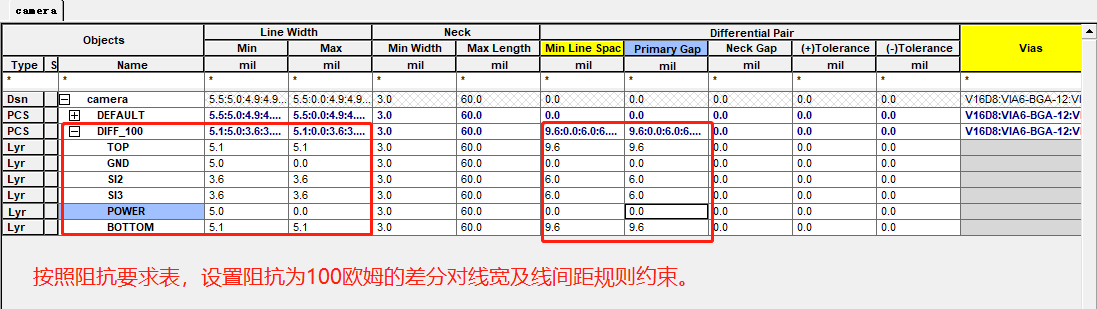 注意:上图中设置的单端走线的线宽,不含差分走线。
