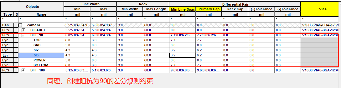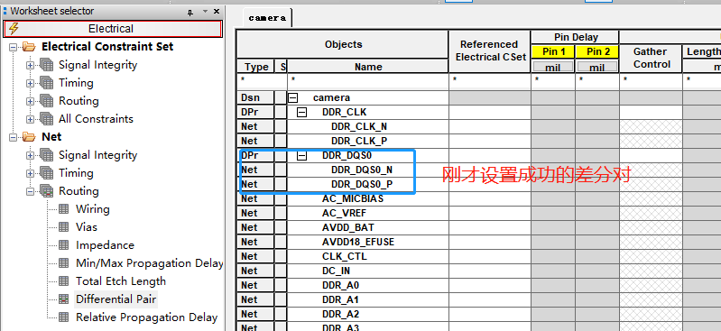 然后单独设置那个差分对的规则: