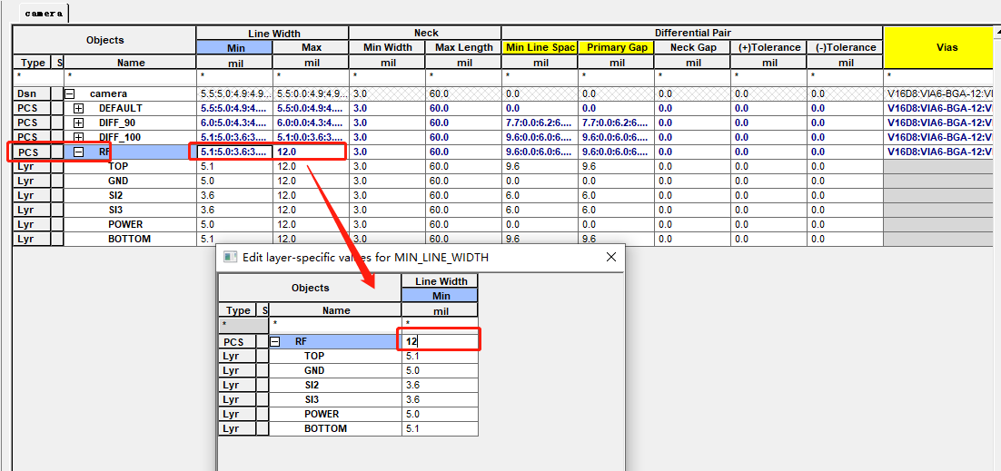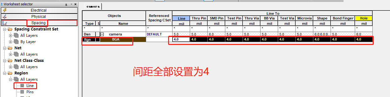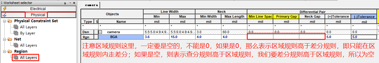 新建的区域规则命名为BGA,设置最小和最大线宽: