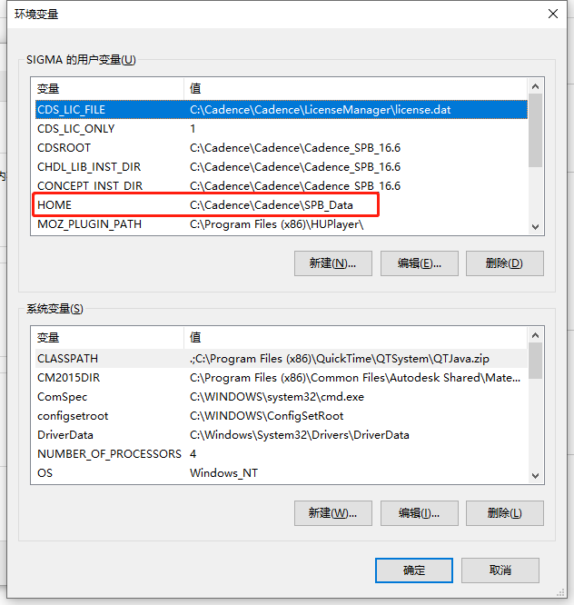 于是我查看电脑环境变量中的HOME指向的路径是:C:\Users\SIGMA\AppData\Roaming\SPB_Data\pcbenv