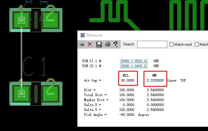 11、如果在测距的时候只是显示mil可以通过设置使其同时显示mil和mm: