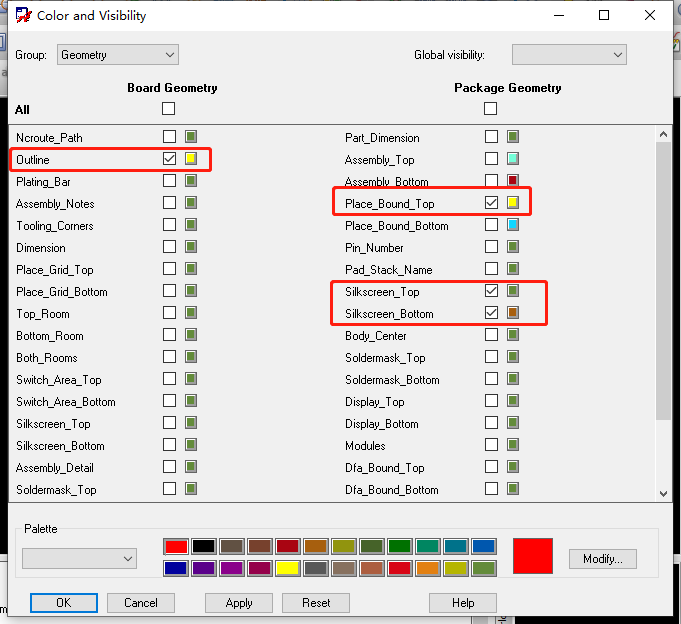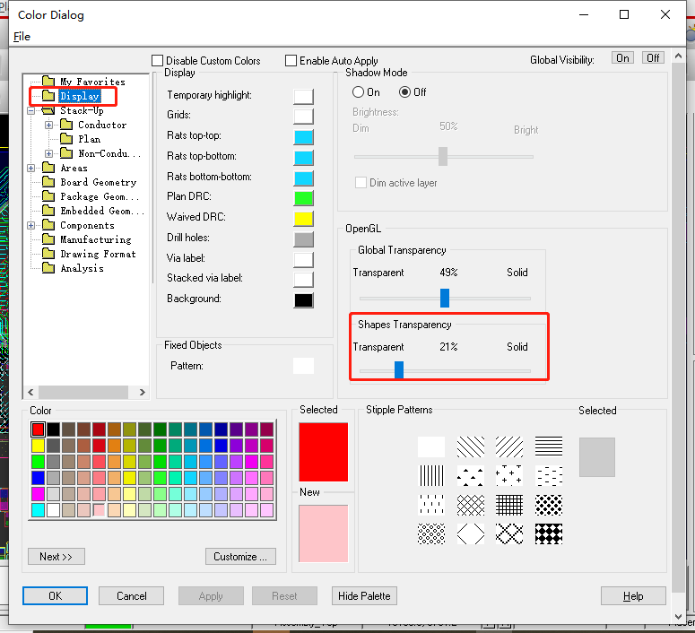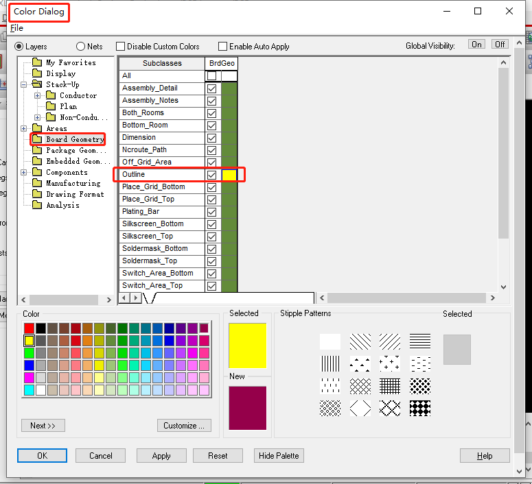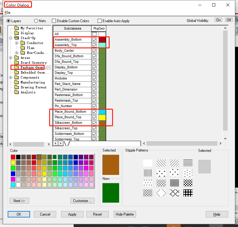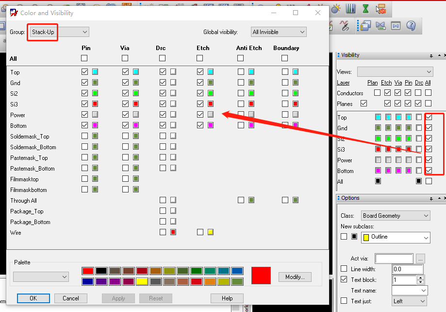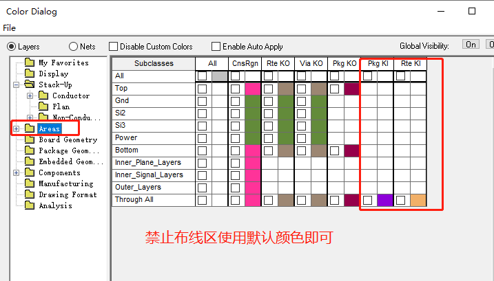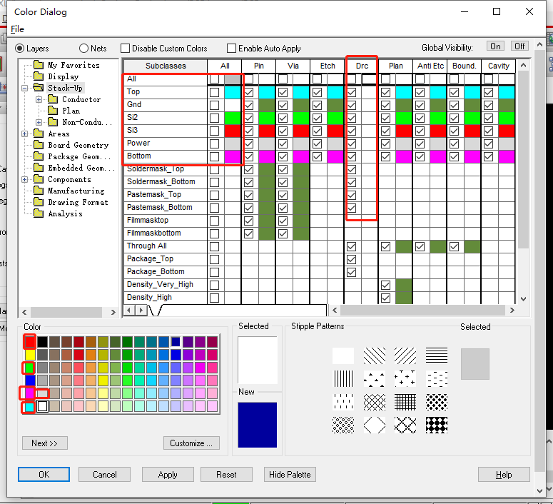 14、PCB层叠颜色设置:Display->Color/Visibility->Stack-Up