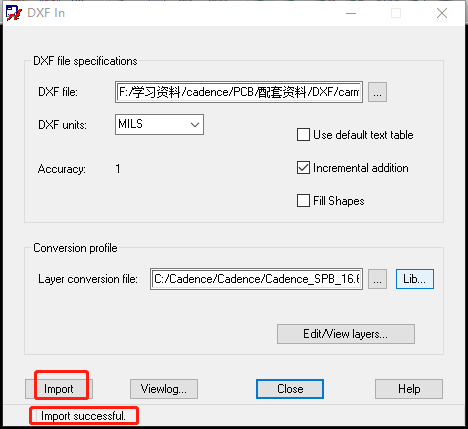 16、导入PCB板框:File->import->dxf