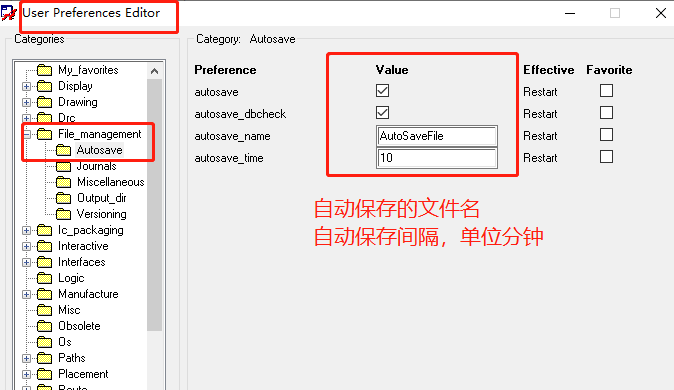 24、设置PCB的自动保存功能:Setup->User Preferences