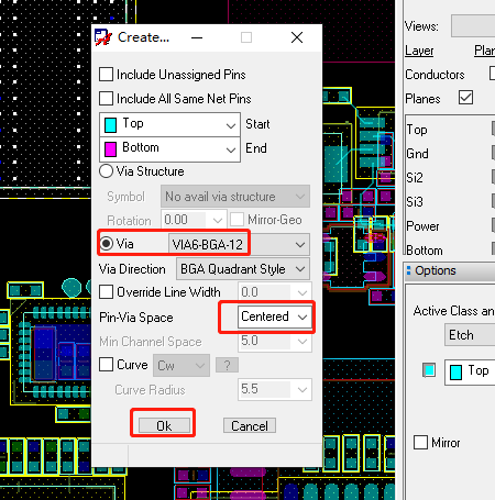 (11)fanout可以将BGA的孔全部扇出:Route->Create Fanout