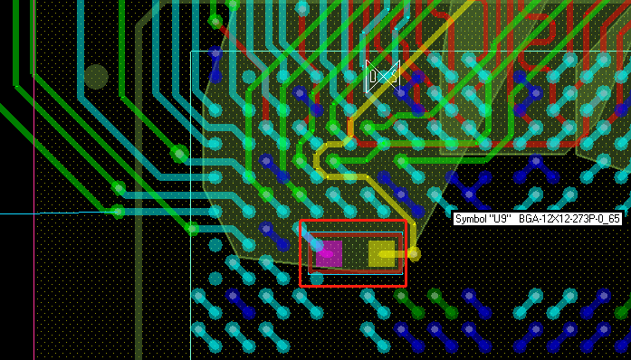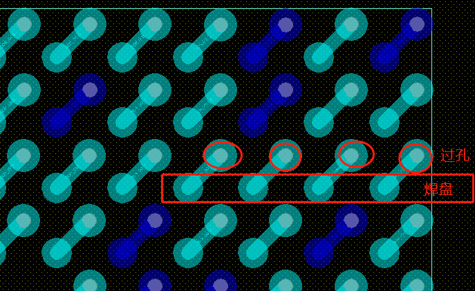 设置完成以后,就能分清楚哪个是BGA的焊盘,哪个是扇出的过孔: