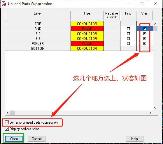 (15)ALLegro中内层无盘过孔的设置:Setup->Unused Pads Suppression