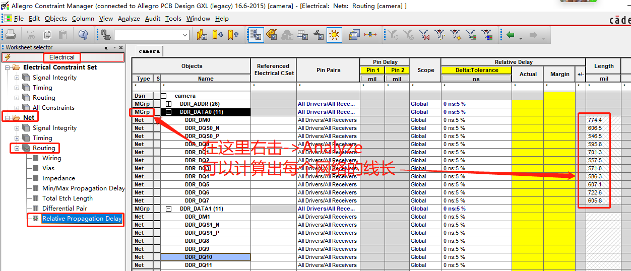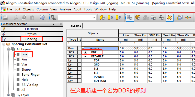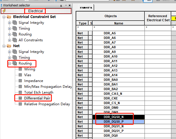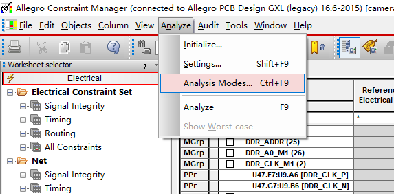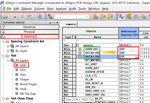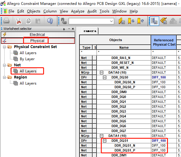 (26)设置地址走线的规则,因为是FLY-BY拓扑,所以设置规则相对会复杂一些,Setup->Constraints->Physical
