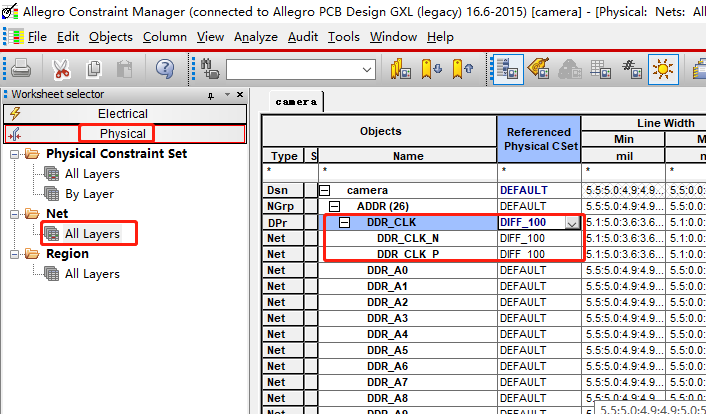 9、根据阻抗表设置布线规则约束:Setup->Constraints->physical,在这里进行线宽的设置: