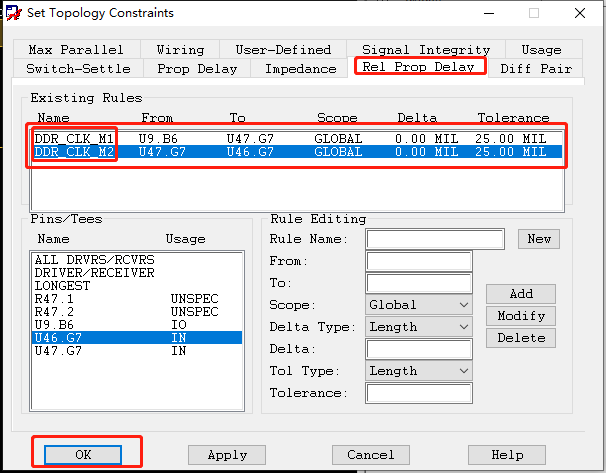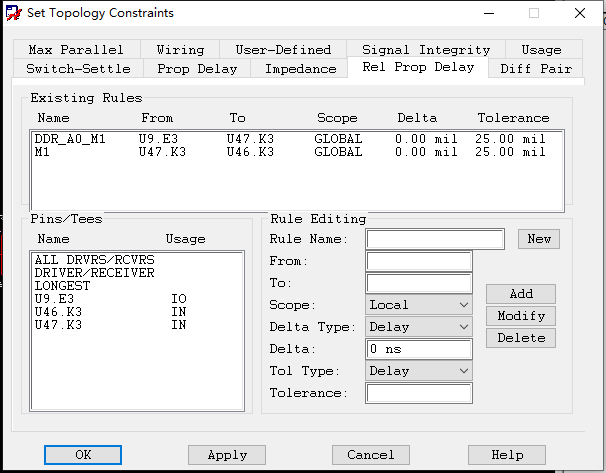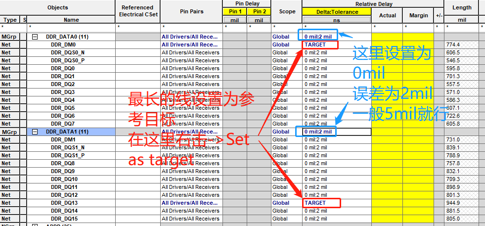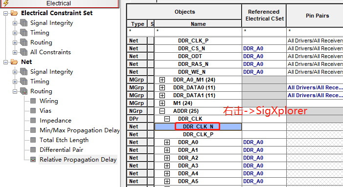 将上面设置的规则适用于所有的地址线(除了那个差分对)