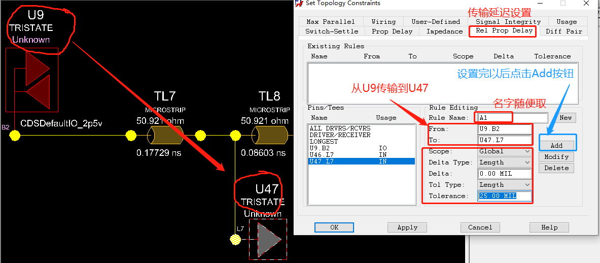 (22)设置相对传播延迟: