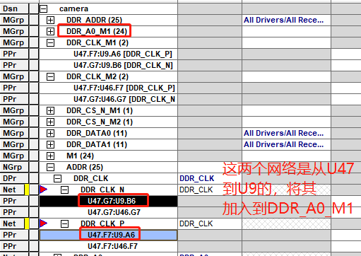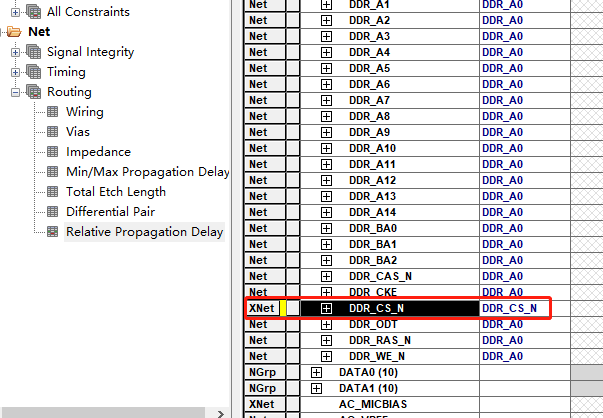 如下图,DDR地址线的拓扑规则DDR_A0对于更改为XNet的网络已经不再适用了。