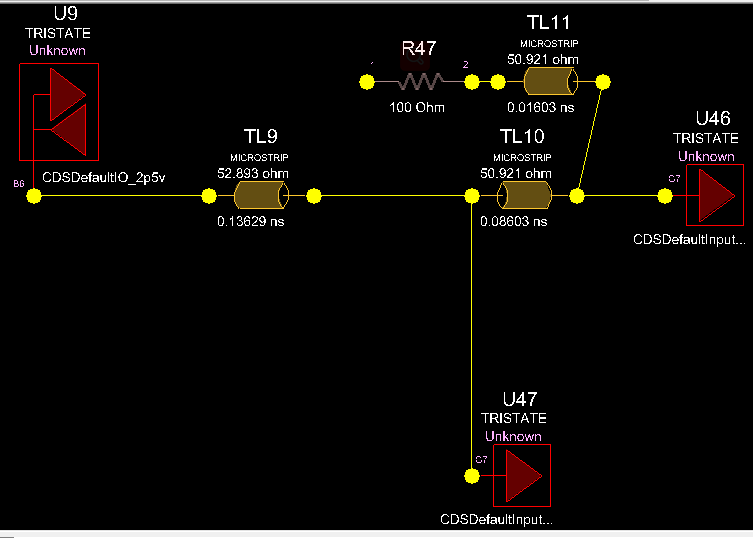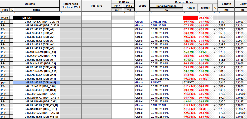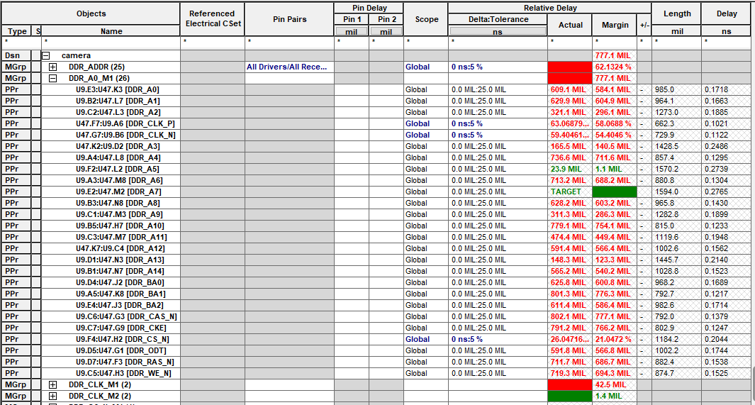 至此,地址线需要等长的设置完毕,如下图,从U9到U47共26条线,从U47到U46共26条线。