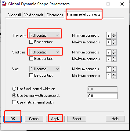 32、铺铜时铜皮和焊盘之间连接方式,将十字连接修改为全连接:以前工艺的不成熟,考虑到散热的需要,使用十字连接,现在工艺很成熟了