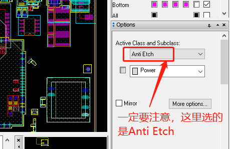后续如果需要调整某部分的铜皮,只要调整Anti Etch层上的走线即可,调整再将上面步骤操作一下,铜皮就更新了。