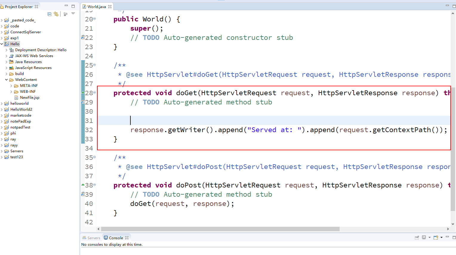 其中World.java,这个selvlet中的doGet函数,是这样写的:
