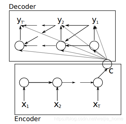 这两种机制都是基于2.1 Cho Encoder-Decoder的结构,编码端Encoder是一致的,差异在于解码端Decoder