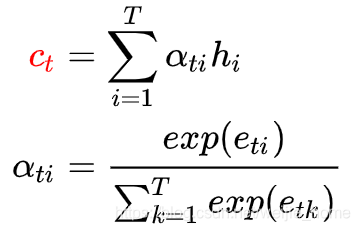当前时刻权值e_t由 Decoder端隐藏层状态s_t (query)和 Encoder端隐藏层状态h_t (key)计算得到;最终的attention由 权值e 和 Encoder端隐藏层状态h (value)计算得到
