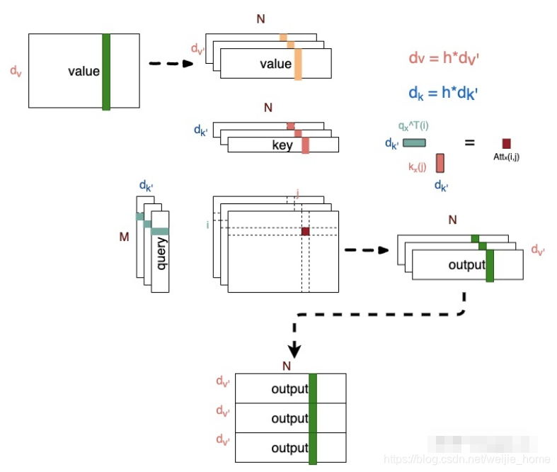 【self-attention】encoder中的self-attention的query, key, value都对应了源端序列(即A和B是同一序列),decoder中的self-attention的query, key, value都对应了目标端序列。