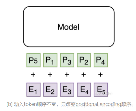 - 下图[b]中的输入Embedding部分没有变化,但是Positional Encoding部分被打乱了顺序