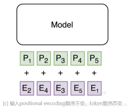 - 下图[c]中的Positional Encoding部分没有变化,但是Embedding部分被打乱了顺序
